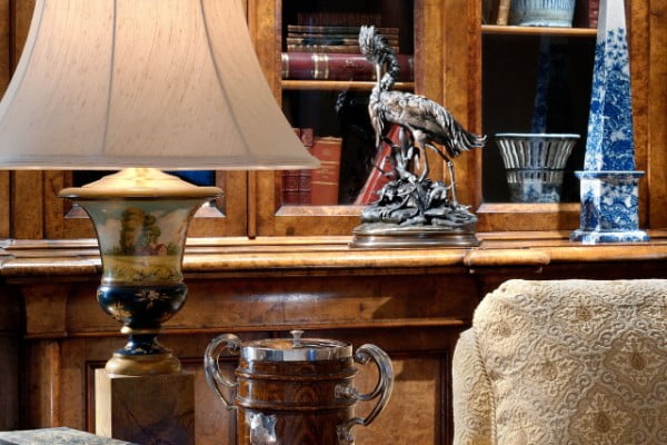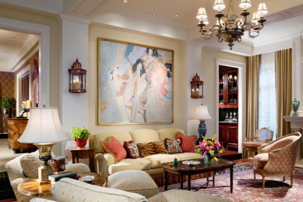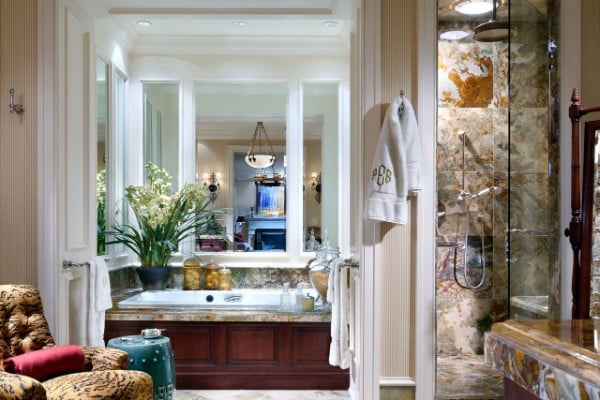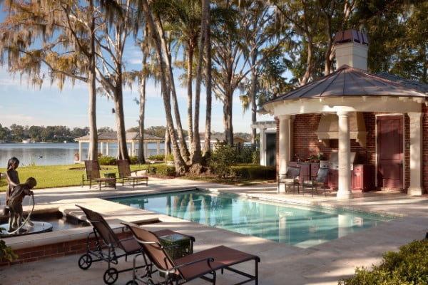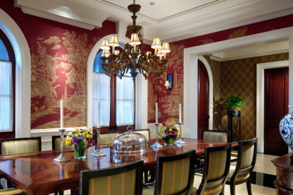 Classic materials such as brick, veneer, limestone columns, and slate roofing enhance this Georgian home where elegance and symmetry prevail.